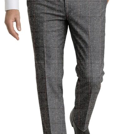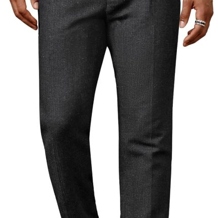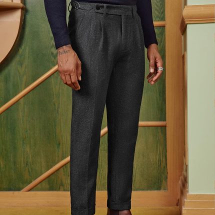Men Vintage Tweed Pants Herringbone Pleated Suit Trousers