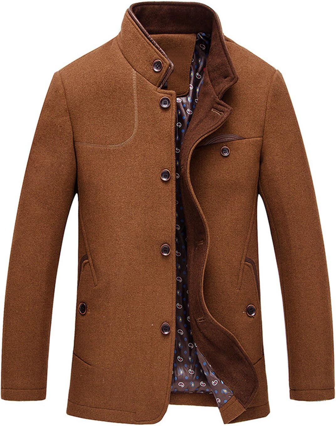 Men’s Gentle Band Collar Single Breasted Wool Blend Pea Coat